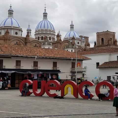 We rushed back to Banos and barely made our next Ecuador Hop Bus to Cuenca, Ecuador where a trip to Devils Nose aboard an old fashion train with wooden cars awaited. It was a three hour drive from Cuenca to Alalusi to meet the train. The town was filled with outdoor markets and indigenous Ecuadorians in colorful traditional outfits. The train trip to the lower valley required about 6 switchbacks where the train reversed directions. At the bottom was a village from the 1800’s where we were entertained by traditional dancing, music and a small museum. On the way back to Cuenca we stopped at the only Inca ruins in Ecuador, Ingapirca. We saw the temple of the sun and foundations of building and houses. One was where virgins, taken from local villages lived, making vestments and “helping” with rituals and animal sacrifices. We experienced roast pig skin (castata) on the way home (similar to Australian Crackle) and finally arrived in Cuenca just in time for dinner.